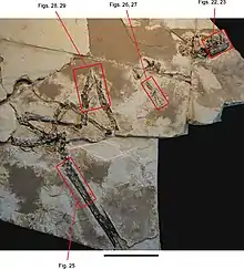 - Currie, Philip J.; Pei-ji Chen (2001). «Anatomy of Sinosauropteryx prima from Liaoning, northeastern China». Canadian Journal of Earth Sciences (NRC Canada) 38 (12): 1705-1727. doi:10.1139/cjes-38-12-1705.
