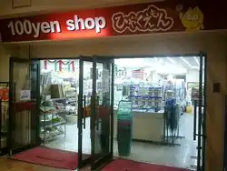 - Este tipo de comercio, también se da en Japón. A menudo se denomina una «Tienda de 100 yenes»【百円ショップ】. Este tipo de tiendas ha proliferado por Japón en torno al cambio de siglo. Es considerado por algunos un efecto de la larga recesión que sufre la economía del país. Durante mucho tiempo, las tiendas de 100 yenes existían no como tiendas en los bajos de un edificio sino como tenderetes móviles que se encontraban (y todavía se encuentran) cerca de la entrada de los supermercados.