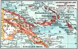 ![]() Los territorios coloniales de Nueva Guinea; en gris, Kaiser-Wilhelmsland. | |||||||||