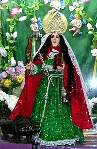 Santa Martha Virgen es una imagen de madera de cedro realizada por el escultor chiapaneco Rodolfo Antonio Piñeiro Morales. El encargo se realizó tras una sucesión de apariciones y milagros que tuvieron lugar en el pueblo.[10] Según testimonios de sus habitantes, Santa Martha Virgen se le apareció al campesino indígena Jorge Gómez Díaz el 17 de junio de 1986. En la aparición se le encomendó la construcción de un templo. Tras la sucesión de varias curaciones y sucesos milagrosos, se fundó la Congregación de Santa Martha Virgen. Las historias de milagros asociadas con el templo de Santa Martha han sido analizadas por antropólogos como ejemplos de la defensa de la identidad indígena ante las clases mestizas dominantes, y en particular ante los abusos históricos de la iglesia católica sobre poblaciones indígenas, a las que todavía en el siglo XXI se les obliga al pago de la décima parte de las ganancias de la tierra para recibir las órdenes sacramentales. El culto del Señor de Tila es actualmente una de las principales fuentes de ingresos de la diócesis de San Cristóbal de las Casas.[10] La popularidad de las festividades y rezos de la congregación fue reconocida por la gente de Tila, que designó con el mismo nombre lo que hoy es el Barrio de Santa Martha. En el año 1999 la iglesia solicitó que la imagen de la Santa Martha Virgen fuera trasladada y custodiada en la iglesia de San Mateo, donde ya estaba el Señor de Tila. La congregación se negó al traslado de la imagen, que actualmente se mantiene en su santuario. Los sucesos provocaron en el año 2001 un cisma en la población católica de Tila.