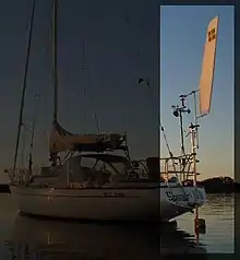 El barco llamado "Spray" de Slocum de hecho llevaba un mecanismo que conectaba la vela y el timón a través de la escota, permitiendo al barco mantenerse de forma autónoma en el rumbo deseado.[4]