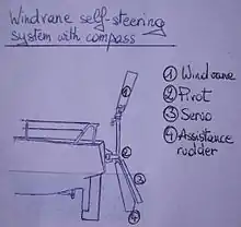 Por tanto, actúa como piloto automático, pero mantiene el ángulo de la embarcación respecto del viento aparente y no un rumbo preciso, con la ventaja, sin embargo, de no malgastar electricidad. Normalmente se instala en la popa de la embarcación.
