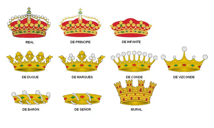 En heráldica, la corona es distintivo de soberanos y señores y se usa también en los escudos de ciudades, provincias y reinos. Las principales formas de coronas usadas como timbres son: