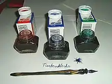 La tinta es un líquido que contiene varios pigmentos o colorantes utilizados para colorear una superficie con el fin de crear imágenes o textos. Comúnmente se considera que la tinta se utiliza en bolígrafos o con pinceles; sin embargo, es utilizada ampliamente en toda clase de impresiones.