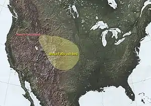 La toba de Mesa Falls queda expuesta en el borde sur las calderas de Island Park y de Henry's Fork, cerca de Ashton (Idaho).
