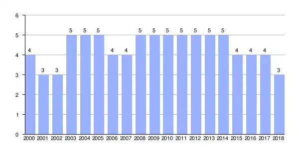 | Gráfica de evolución demográfica de Toxiño entre 2000 y 2018 |