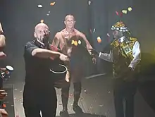 - Clothesline,[84] a veces mientras realiza un discus[85]