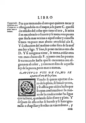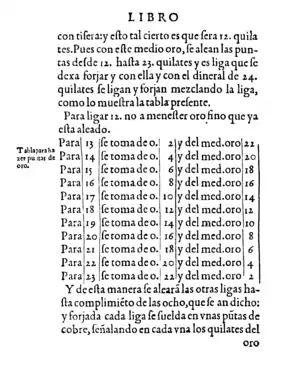 - Arfe de Villafañe, J.: Quilatador de la plata, oro y priedras. Imprenta de Alonso y Diego Fernández de Córdoba. Valladolid, 1572. Reimpresión facsimilar: Librerías París-Valencia. Valencia, 1985.