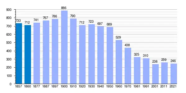 | Gráfica de evolución demográfica de Torás[1] entre 1857 y 2021 |