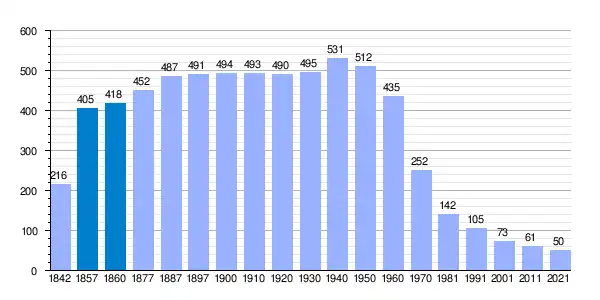 | Gráfica de evolución demográfica de Tordellego[3] entre 1842 y 2021 |