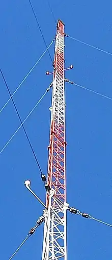 La celosía de acero es la forma más extendida de construcción de mástiles. Proporciona gran fuerza, bajo peso, gran resistencia al viento y es económico. Suelen ser de sección triangular, aunque la sección cuadrangular también está ampliamente extendida. Los tirantes soportan las fuerzas laterales del viento en todas las direcciones y permiten que los mástiles sean estrechos y de construcción muy simple.