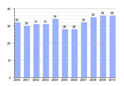 Población de derecho (2000-2010) según los censos de población del INE a 1 de enero de cada año.[9] |