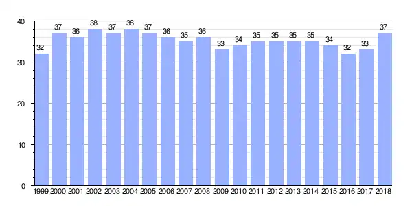 | Gráfica de evolución demográfica de Torrente entre 1999 y 2018 |