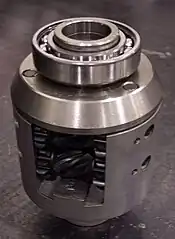 El torsen es el único sistema capaz de repartir el deslizamiento de forma independiente a la velocidad de giro de los semiejes. Funciona mediante la combinación de tres pares de ruedas helicoidales que engranan a través de dientes rectos situados en sus extremos (engranajes de concatenación). La retención o el aumento de la fricción se produce porque las ruedas helicoidales actúan como un mecanismo de tornillo sin fin: el punto de contacto entre los dientes se desplaza sobre una línea recta a lo largo del propio diente, lo que significa la unión del movimiento de giro de las ruedas con el movimiento de deslizamiento que supone fricción. El tarado o grado de resistencia se determina precisamente por el ángulo de la hélice de estas ruedas helicoidales.