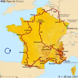 El 40.º Tour de Francia[1] se disputó entre el 3 de julio y el 26 de julio de 1953 con un recorrido de 4476 km. dividido en 22 etapas.