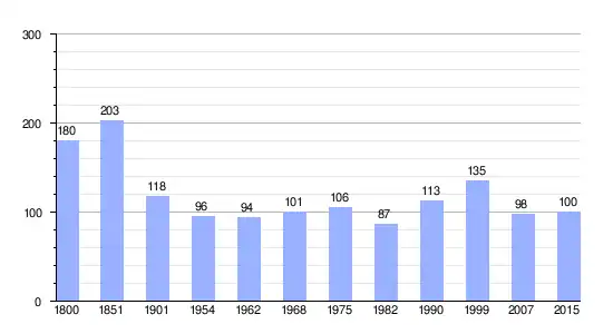 Los datos demográficos contemplados en este gráfico de la comuna de Tournedos-sur-Seine[4] se han cogido de 1800 a 1999 de la página francesa EHESS/Cassini, y los demás datos de la página del INSEE.[5]