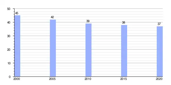| Gráfica de evolución demográfica de Touville (parroquia) entre 2000 y 2020 |