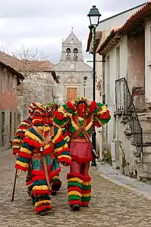 Los Caretos de Podence es una mascarada celebrada en el pueblo de Podence, perteneciente al municipio de Macedo de Cavaleiros, que ha sido declarada patrimonio cultural inmaterial de la Humanidad por la Unesco. Insertados en las fiestas de invierno, tan características en la región de Trás-os-Montes y del Alto Duero, los Caretos representan imágenes diabólicas y misteriosas que cada año, desde tiempos inmemoriales, salen a la calle en las fiestas de carnaval. Interrumpiendo los largos silencios de cada invierno, como si salieran en secreto e impredecibles de los rincones de Podence, aparecen los Caretos y sus frenéticos cencerros bien cruzados en las franjas de color de mantas gruesas de sus trajes.[20]
