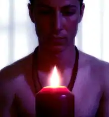 - Primera fase: Enciende una vela y sitúala a más de un metro de distancia. Siéntate en frente de ella. La llama debería de estar al nivel de los ojos de manera que se pueda ver directamente sin permanecer incómodo. Comienza a respirar lenta y profundamente. Mientras respiras de esta forma, fija la mirada en el punto medio de la llama, en donde la vela emite más fulgor. Mantén la columna recta y concentra la mirada fija en la llama sin distraerte por cualquier tipo de estímulo externo o pensamiento. Si surgen pensamientos, ignóralos, permite que se vayan. Es importante estar despierto y vigilante.