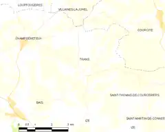 Trans es una población y comuna francesa, en la región de Países del Loira, departamento de Mayenne, en el distrito de Mayenne y cantón de Bais.