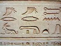 Los símbolos de la columna «pronunciación fonética» siguen los convenios del API; son solo suposiciones, que mayoritariamente sostienen los egiptólogos. La columna «pronunciación corriente» respeta los usos castellanos.