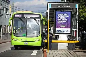 ![]() Autobús biarticulado del sistema de Transmetro de la Ciudad de Guatemala. | ||