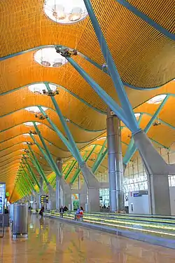 Las terminales T1, T2 y T3 cuentan en total con seis zonas de embarque: A, B, C, D, E y F, que están unidas a las terminales. La terminal T4 y su satélite, la T4S, están unidas mediante un tren automático subterráneo.[3]