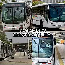 - El Transmetro de Barranquilla , oficialmente Sistema Integral del Transporte Masivo de Barranquilla y su Área Metropolitana, es el sistema de transporte masivo que opera en la ciudad colombiana de Barranquilla desde el 7 de abril de 2010. Barranquilla se convertirá así en la quinta ciudad Colombiana (Después de Bogotá, Cali, Pereira y Bucaramanga) en implementar e inaugurar este tipo de sistema de transporte que consiste en buses articulados que viajan por carriles exclusivos de las principales avenidas de la ciudad con paraderos fijos con el objetivo de mejorar la movilidad de la población.