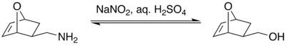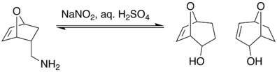 Se demostró que cuando una exo metilamina de un sistema con tensión del puente de un sistema bicíclico se somete a la desaminación de ácido nitroso , no produce la expansión del anillo.