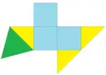 | Caras: 3 cuadrados 3 triángulos rectángulos especiales 1 triángulo equilátero |