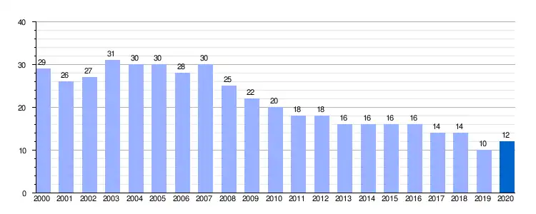 | Gráfica de evolución demográfica de Traspeña de la Peña entre 2000 y 2020 |