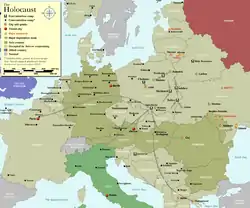 Después de la Conferencia de Wannsee de 1942, los nazis comenzaron a asesinar a los judíos en grandes cantidades en los campos de exterminio recién construidos durante la Operación Reinhard. Desde 1941, los Einsatzgruppen, escuadrones de exterminio móviles, ya estaban llevando a cabo tiroteos masivos de judíos en los territorios orientales que eran ocupados previamente por la Unión Soviética, así como al este de las fronteras soviéticas de 1939.[16] Los judíos de Europa occidental fueron deportados a guetos vaciados mediante matanzas masivas, como la masacre de Rumbula de los habitantes del gueto de Riga o enviados directamente a los campos de exterminio de Treblinka, Belzec y Sobibór, construidos en la primavera y el verano de 1942 solo para gasear. Las cámaras de Auschwitz II Birkenau comenzaron a funcionar en marzo. El último campo de exterminio, Majdanek, fue construido a fines de 1942.[17]