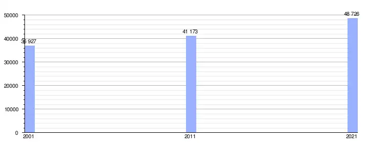 | Gráfica de evolución demográfica de Tres Cantos[9] entre 2001 y 2021 |