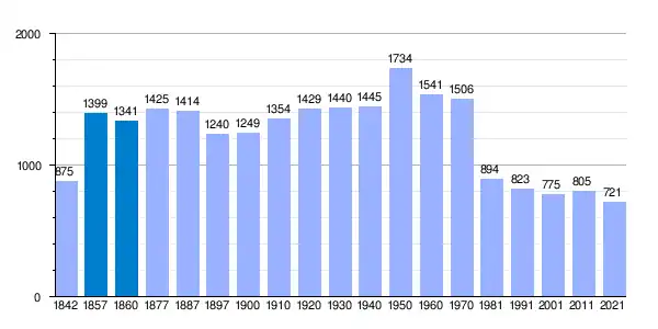 | Gráfica de evolución demográfica de Trevélez[2] entre 1842 y 2021 |