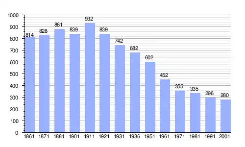 | Gráfica de evolución demográfica de Treville entre 1861 y 2001 |