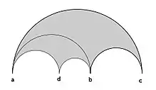 Sea G el subgrupo de Lie cerrado tridimensional de GL(V) que conserva Λ. Como V se puede identificar con un espacio tridimensional de Lorentz o de Minkowski con signatura (2,1), el grupo G es isomorfo al grupo de Lorentz O(2,1) y por lo tanto SL±(2,R) / ±I. [31] Eligiendo e para que sea un vector raíz positivo en X, el estabilizador de e es un subgrupo compacto maximal K de G isomorfo a O(2). El espacio homogéneo X = G / K es un espacio simétrico de curvatura negativa constante, que se puede identificar con el hiperboloide bidimensional o con el plano de Lobachevsky . El grupo discreto Γ actúa discontinuamente sobre G / K: el espacio cociente Γ G / K es compacto si a, b y c son todos finitos, y de área finita en caso contrario. Los resultados sobre la cámara fundamental de Tits tienen una interpretación natural en términos del triángulo de Schwarz correspondiente, que se traducen directamente en las propiedades del teselado del triángulo geodésico a través del grupo de reflexión hiperbólica Γ. El paso de los grupos de Coxeter a la teselación se encuentra primero en los ejercicios del §4 del Capítulo V de Bourbaki (1968), debido a Tits, y en Iwahori (1966); actualmente se dispone de muchos otros tratamientos equivalentes, no siempre expresados directamente en términos de espacios simétricos.
