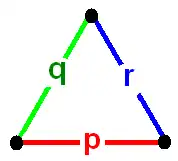 Un triángulo de dominio fundamental (p q r), con ángulos de vértice π⁄p, π⁄q y π⁄r, puede existir en diferentes espacios, dependiendo del valor de la suma de los recíprocos de estos números enteros: