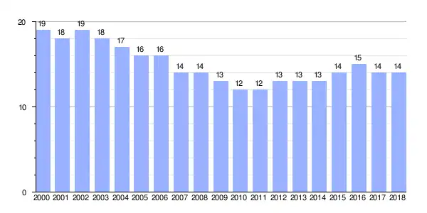 | Gráfica de evolución demográfica de Tronceda a Vella entre 2000 y 2018 |