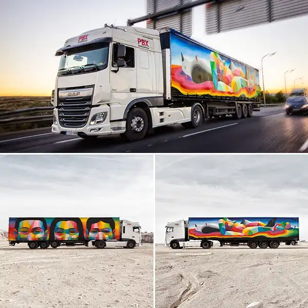 ![]() Camión pintado por el artista Okuda para el proyecto Truck Art Project. | ||