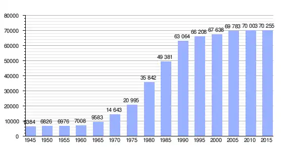 Según los datos del censo japonés, la población de Tsurugashima ha crecido fuertemente en los últimos 50 años.