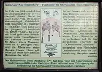 El 12 de febrero de 1914, dos trabajadores de la cantera Am Stingenberg descubrieron, entre los escombros que sacaban de la cantera, unos huesos que les parecieron extraños. Los huesos y el suelo circundante mostraban una coloración rojiza. Los huesos estaban casi intactos y en condiciones tan buenas que los trabajadores pudieron reconocer partes de dos cráneos como restos humanos. El trabajo fue interrumpido y el joven profesor local Franz Kissel se encargó de que se asegurase el yacimiento. Se vio reforzado en este propósito cuando apareció bajo uno de los cráneos un objeto estrecho de unos 20 centímetros, que exhibía un ornamento tallado en su extremo y parecía trabajado a partir de un hueso. Los restos se depositaron primeramente en un viejo cajón de munición, que había contenido anteriormente el explosivo para la voladura de rocas.