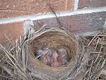 Pollitos de mirlo común de unos siete días.