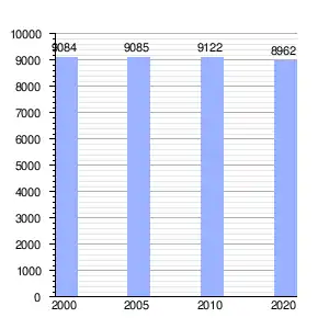 En 2020 el 47.2 % de la población (4231 personas) eran hombres y el 52.8 % (4731 personas) eran mujeres. El 64.6 % de la población, (5786 personas), tenía edades comprendidas entre los 15 y los 64 años.[4]