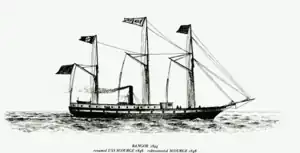 Conocido como el Bangor, este barco fue comprado por los Estados Unidos el 30 de diciembre de 1846 con el fin de entrar en servicio durante la Guerra con México. Una vez equipado, su nombre fue rebautizado a USS Scourge y comandado por el coronel Charles G. Hunter.