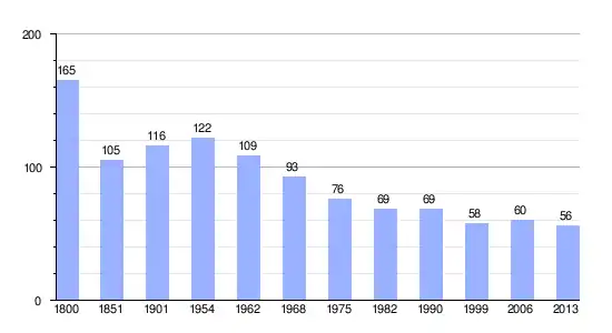 Los datos demográficos contemplados en este gráfico de la comuna de Ulcot[4] se han cogido de 1800 a 1999 de la página francesa EHESS/Cassini, y los demás datos de la página del INSEE.[5]