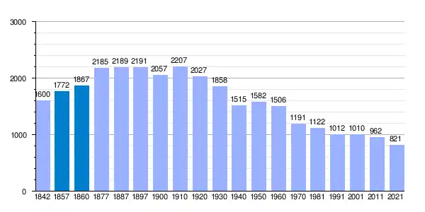 | Gráfica de evolución demográfica de Uleila del Campo[8] entre 1842 y 2021 |