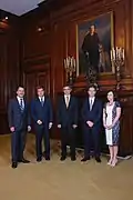 ![]() Ulk acompañando a Arturo Alessandri (al fondo) y al ministro de Hacienda Gustavo Ross, a mediados de la década de 1930. | ||