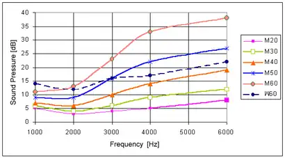 Por debajo de 2000 Hz y según se va bajando en frecuencia, el oído se vuelve menos sensible. Los umbrales de audición para frecuencias menores de 2 kHz son: