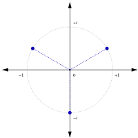 Al igual que todas las raíces de 1 , todas las raíces de i son los vértices de polígonos regulares inscritos dentro del círculo unitario en el plano complejo.