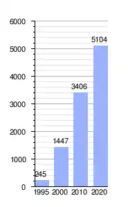 | Gráfica de evolución demográfica de Unidades Habitacionales entre 1995 y 2020 |